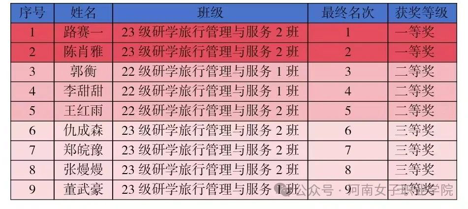 经过激烈的角逐,竞赛最终评选出一等奖2名、二等奖3名、三等奖4名,获奖选手在比赛中展现了出色的导游技能和个人魅力。