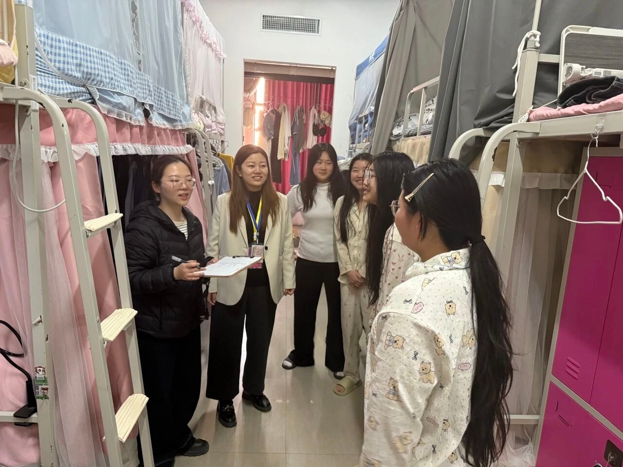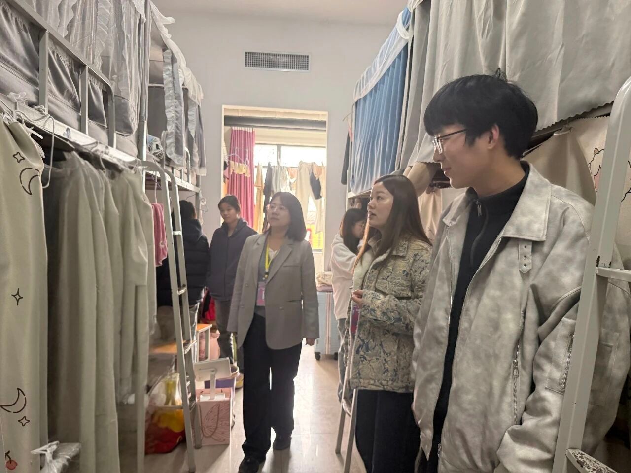 本次重点检查了宿舍内的用电安全、消防设施、环境卫生以及是否存在违规电器和易燃易爆物品等情况。在检查过程中,老师们与学生亲切交流,询问他们的学习和生活情况,提醒学生要提高安全意识,遵守宿舍管理规定,共同维护良好的宿舍环境。