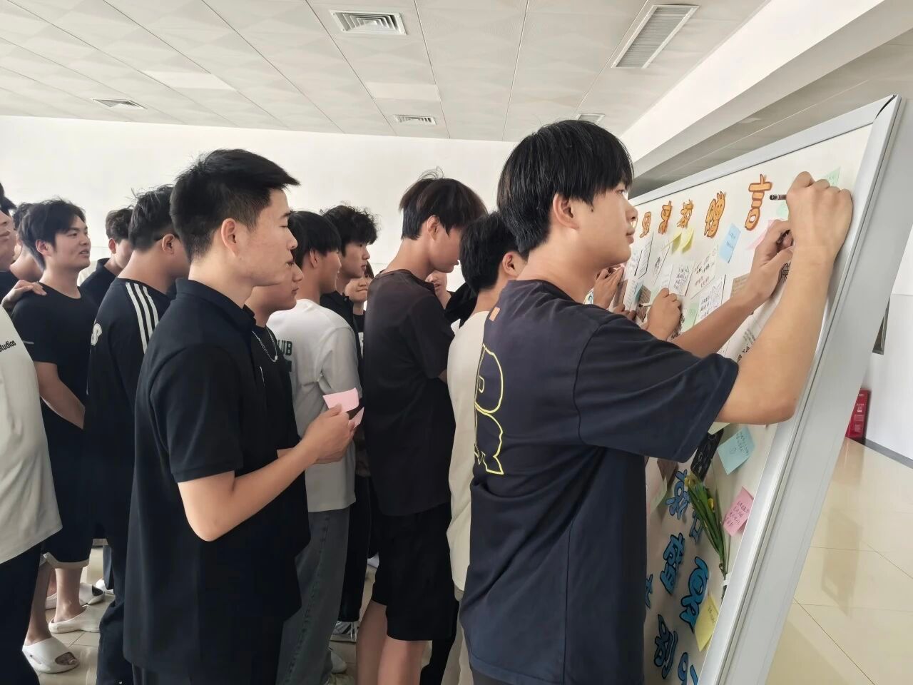 活动现场,23级实习学生纷纷执笔,将对老师的感恩、对学校的眷恋、对学弟学妹的期许,化作一句句朴实而真挚的话语,把好的思想、好的作风、好的传统倾囊相授。这些赠言不仅是个人情感的抒发,更承载着对校园文化的传承与延续。