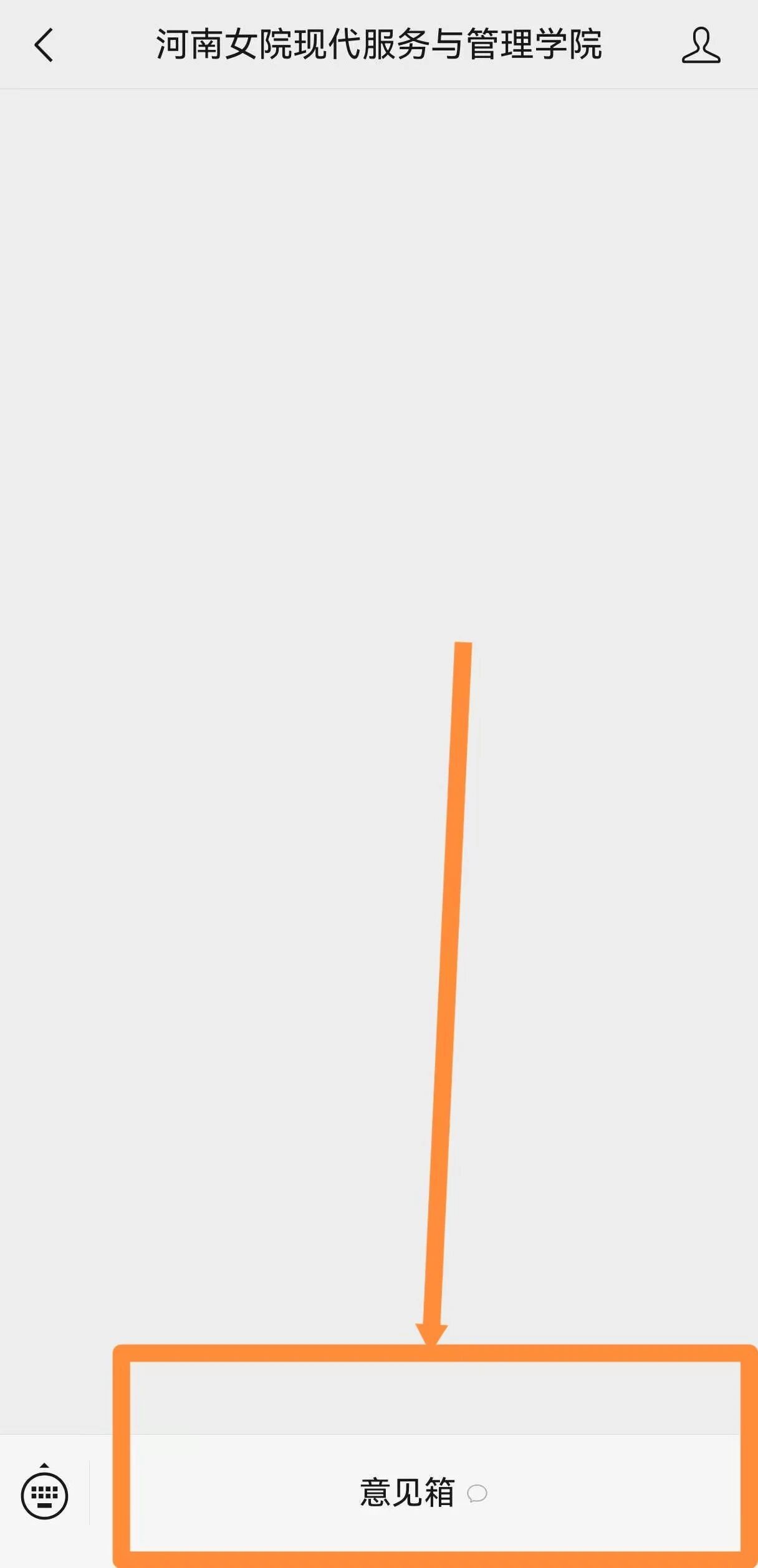 2.关注“河南女院现代服务与管理学院”公众号,进入公众号对话框,点击菜单栏【意见箱】,即可跳转至反馈页面;