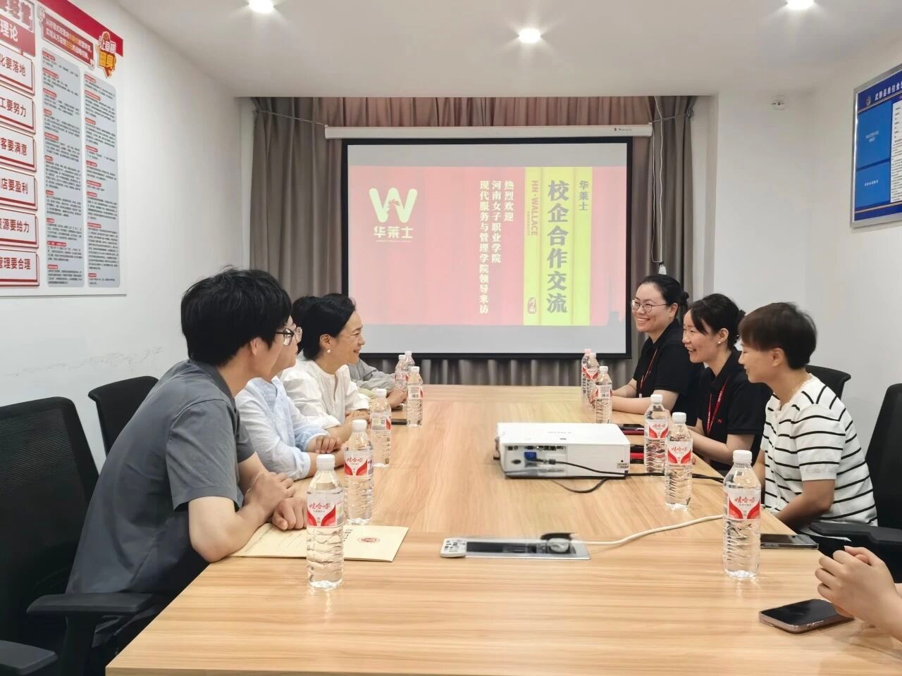 在座谈交流环节,校企双方围绕人才培养、实践教学、实习就业等合作模式展开热烈探讨。周旷怡详细介绍了学院的专业设置、人才培养模式;河南华莱士食品有限公司省营运经理职丹丹介绍了公司的发展历程、用人标准及岗位需求,对学院的办学理念和人才培养给予了高度评价。双方都表达了后续开展深度合作的强烈意愿。