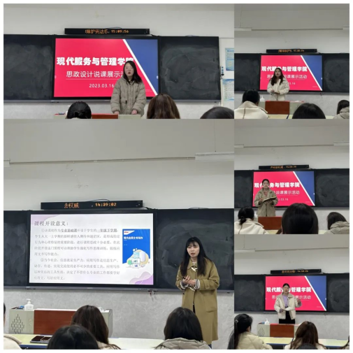 为全面落实立德树人根本任务,提升教师的课程思政意识和课程思政建设水平,2023年3月16日,现代服务与管理学院了开展了思政设计说课交流活动。