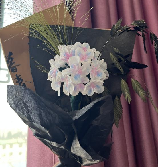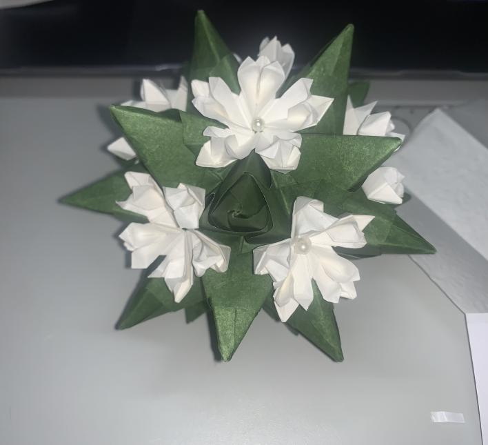 作品简介:茉莉花代表着忠贞与质朴,我们都要怀着一颗善良的心;一朵一朵茉莉花组成了一个花球,给自己和他人带来温暖。